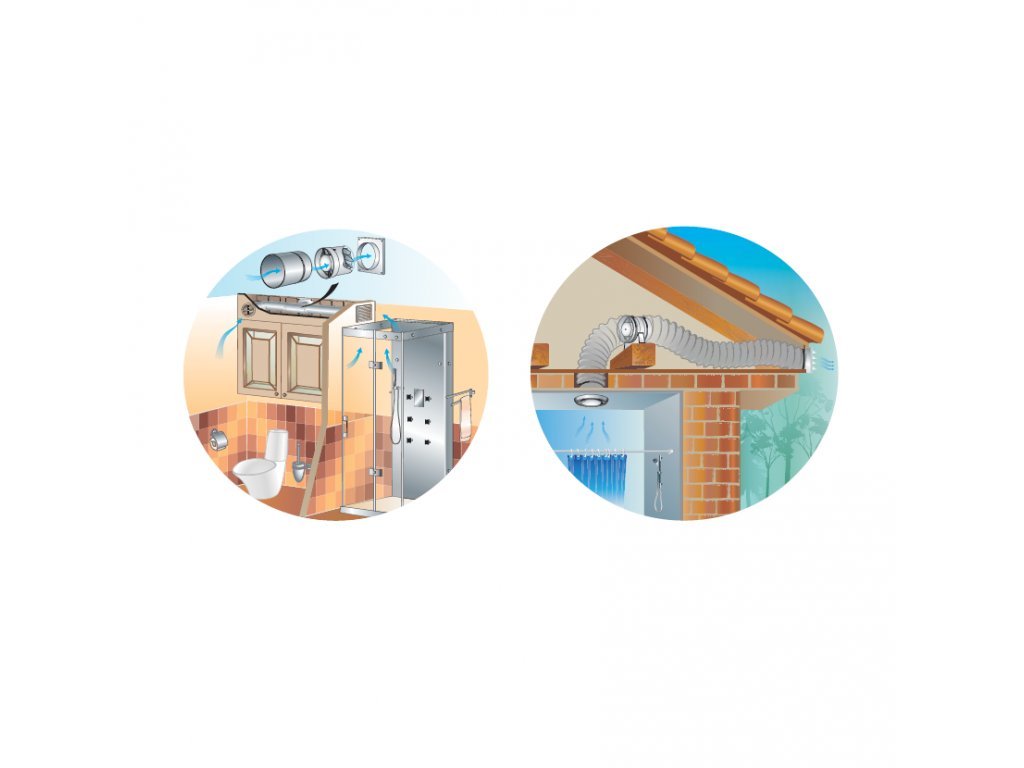 Tichý ventilátor do potrubí pro odvod nebo přívod vzduchu (záleží na instalaci). Ventilátor je vhodný k trvalému odvětrávání koupelen, sprch, sklepů nebo toalet či jiných prostor. Velký průtok vzduchu v kombinaci s nízkou hladinou hluku. Výhodná prostorově úsporná konstrukce navržená pro plastové a plechové pevné (spiro) potrubí nebo ohebné hadice (semiflex, aluflex, sonoflex, ...). Jedná se o axiální ventilátor, je tedy vhodný pro dopravu vzduchu na krátké vzdálenosti při nízké tlakové ztrátě.