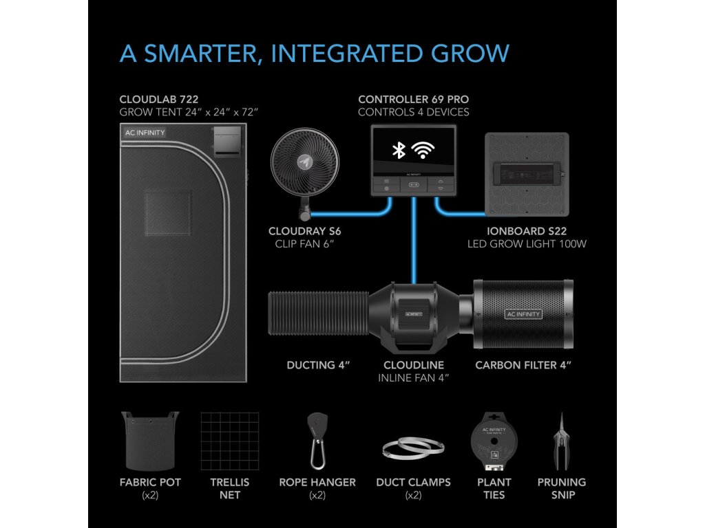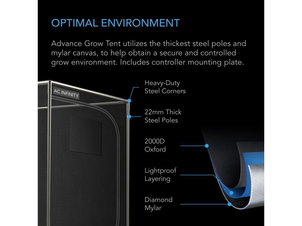 AC Infinity Advance Grow Tent System 60x60x180cm, 1-Plant Kit, WiFi-Integrated Controls