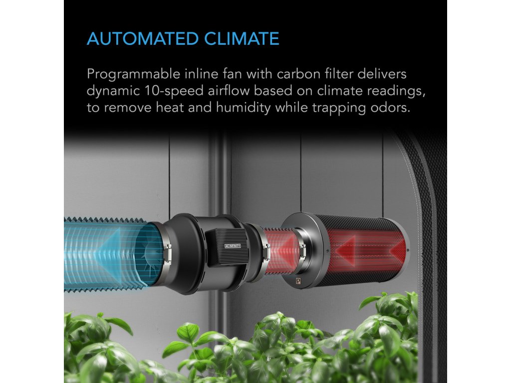 - Připojte své mobilní zařízení k aplikaci přes WiFi a automatizujte a sledujte klima ve vašem pěstebním stanu odkudkoli.