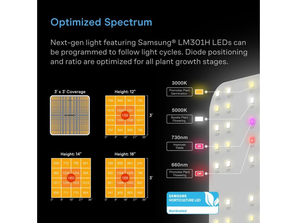 - Spektrum: 660nm, 730nm, 3000K, 5000K