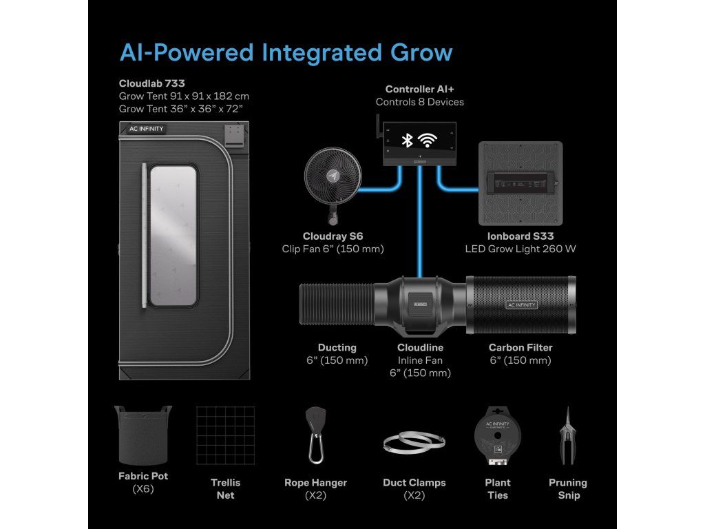 AC Infinity AI+ Grow Tent System PRO 90x90x180cm, 3-plant set
