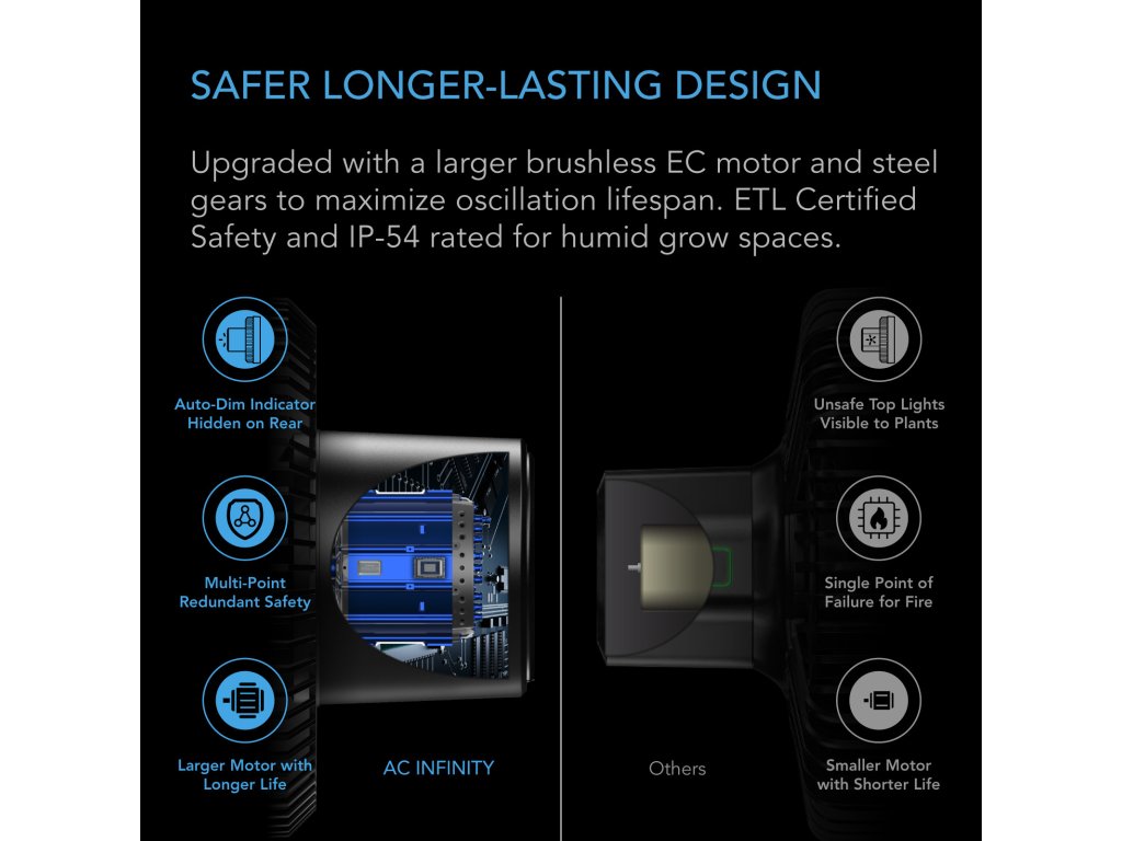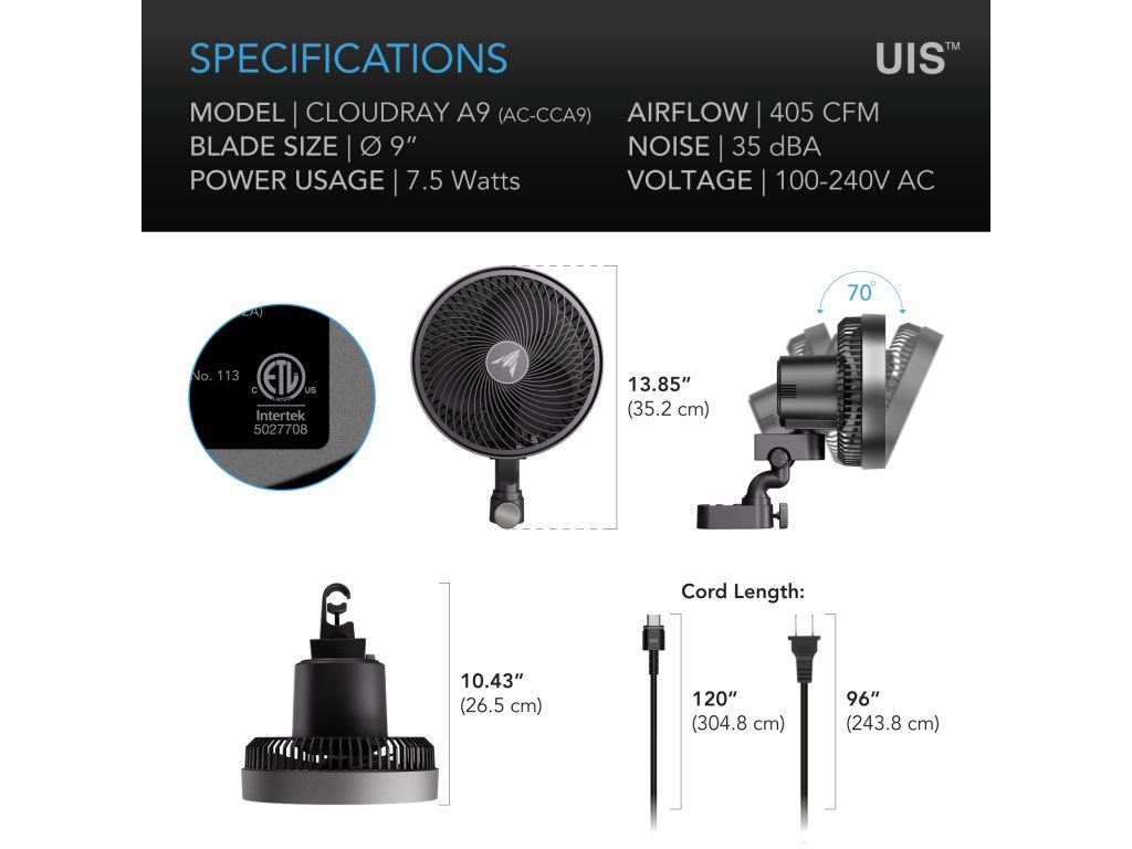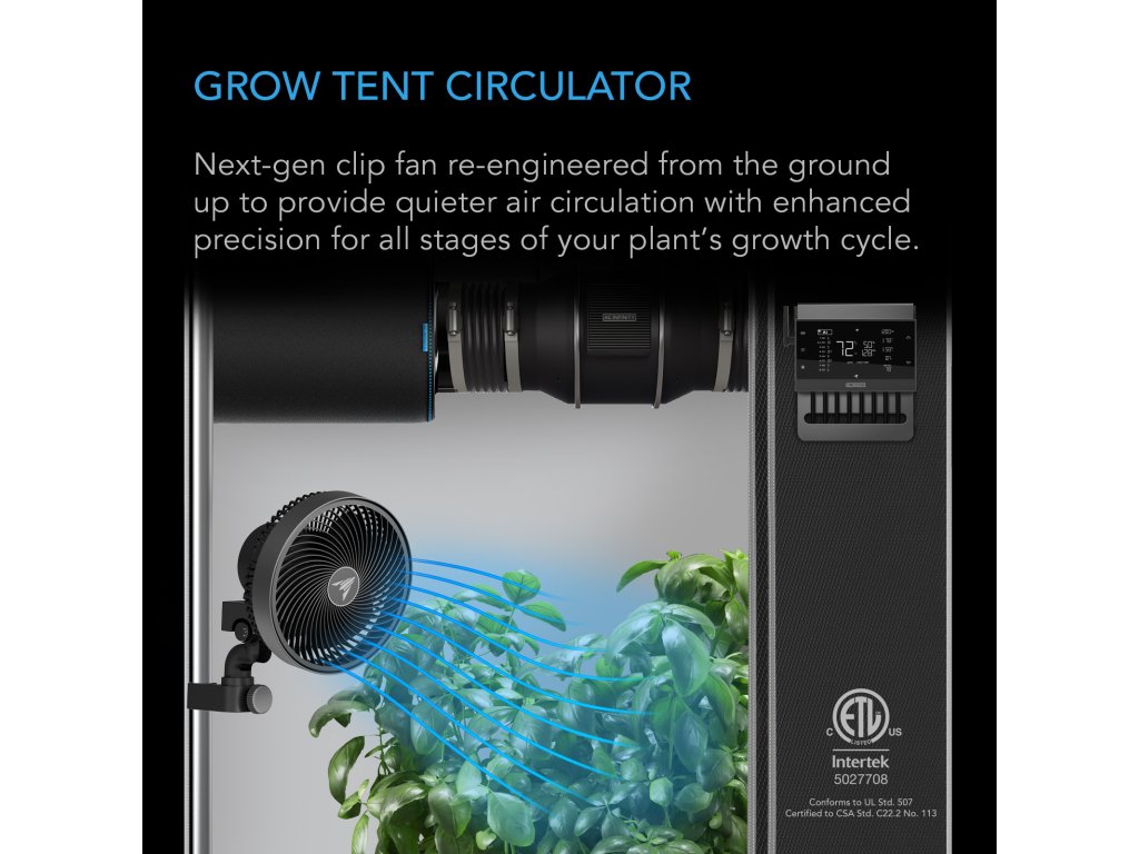 AC Infinity CLOUDRAY A9, Grow Tent Clip Fan 225mm, EC Motor, 10-stage Dynamic Wind Modes and Fan Speeds