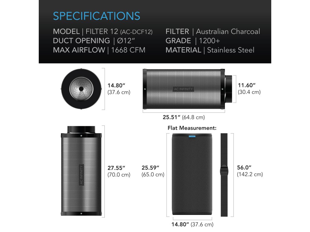 AC Infinity Duct Carbon Filter, Australian Charcoal - 300mm