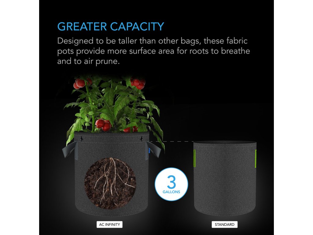 AC Infinity Heavy Duty Reusable Fabric Pots, 11 liter, 5-Pack