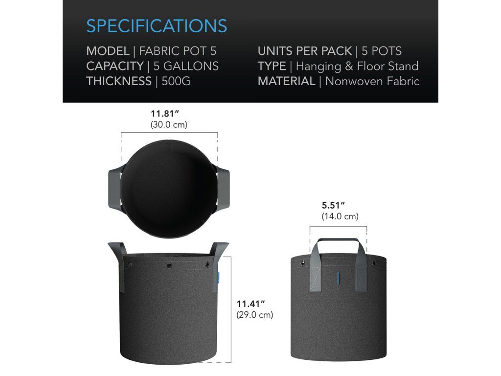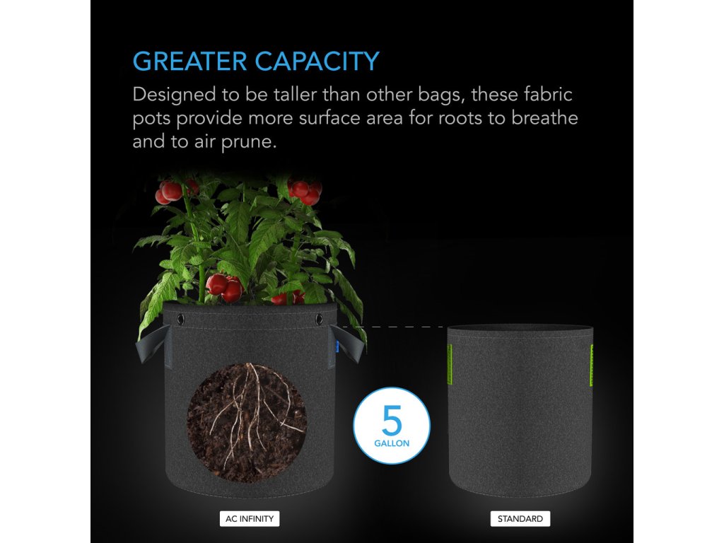 - Skutečná kapacita: Každý pytel má kapacitu 5,39 galonu a poskytuje dostatek prostoru pro zdravý růst kořenů.