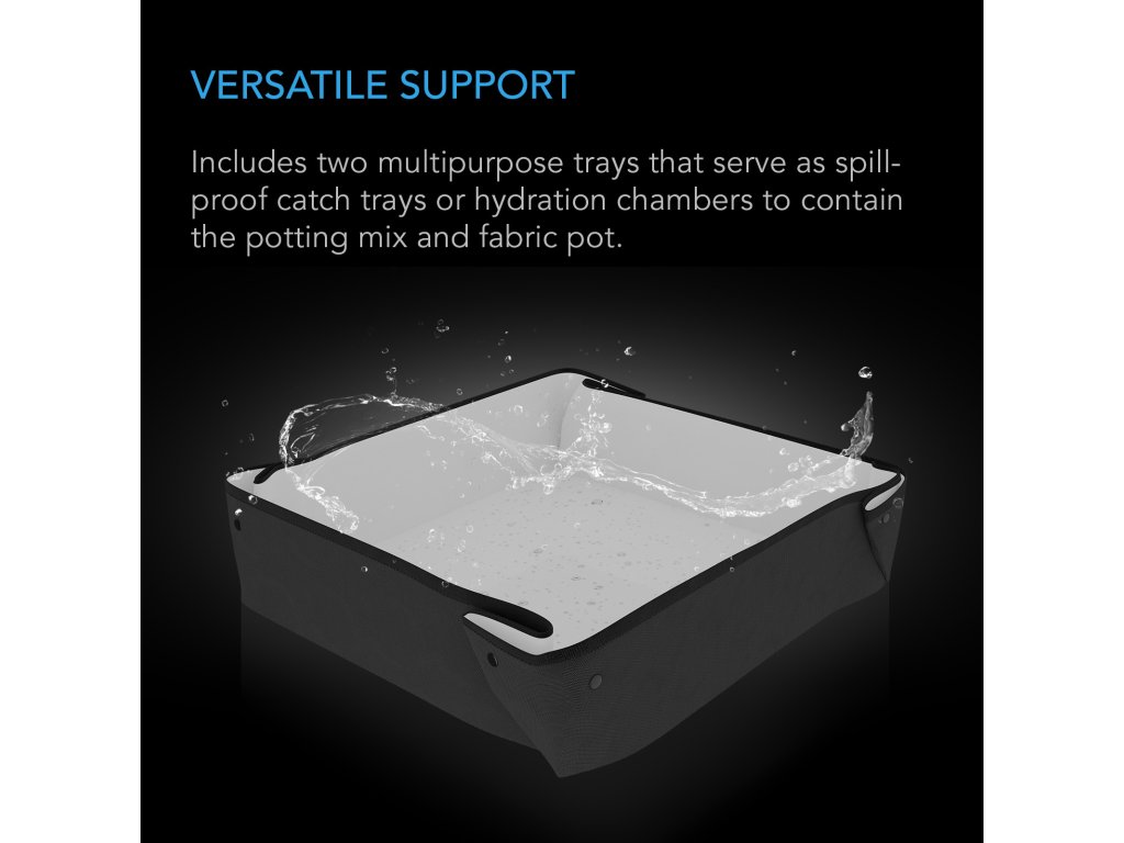 - Dvojité víceúčelové podnosy lze použít jako hydratační komoru k roztažení kokosového vlákna a zároveň udržet váš pěstební prostor čistý.