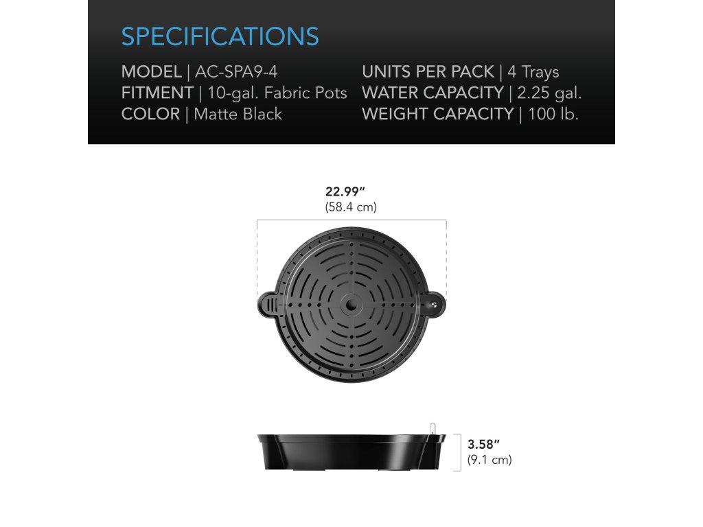 AC Infinity Self-Watering Fabric Pot Base XL, 4-Pack