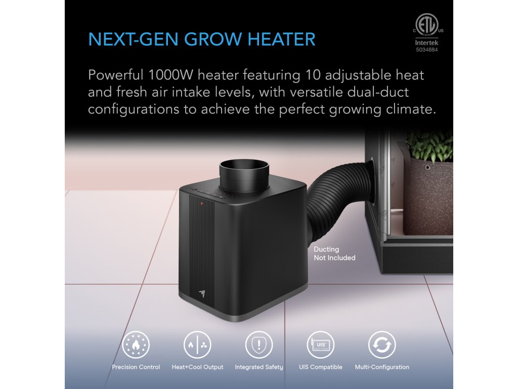 - Výkonný 1000W ohřívač s přesným ovládáním a konfigurovatelným designem pro optimalizaci klimatu ve všech fázích růstu rostlin.