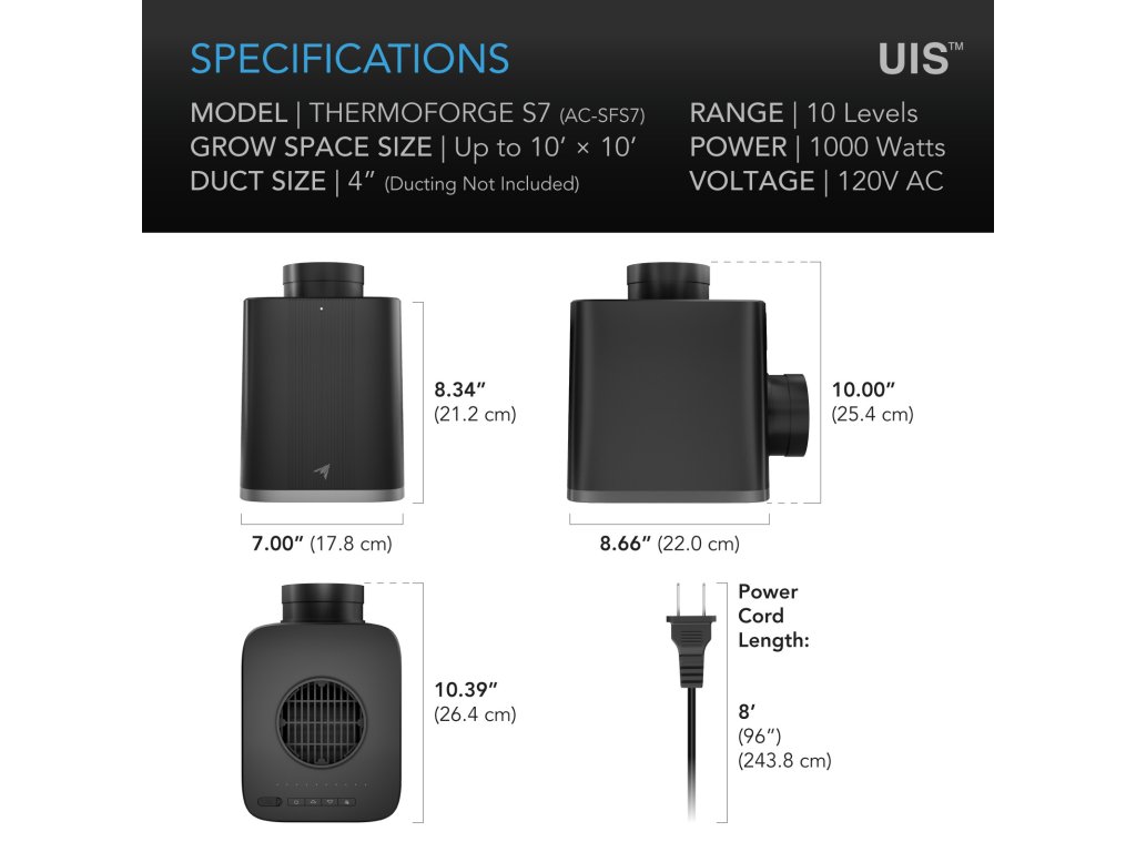 AC Infinity THERMOFORGE S7, Plant Heater 1000W with 10 Heating and Air Intake Levels