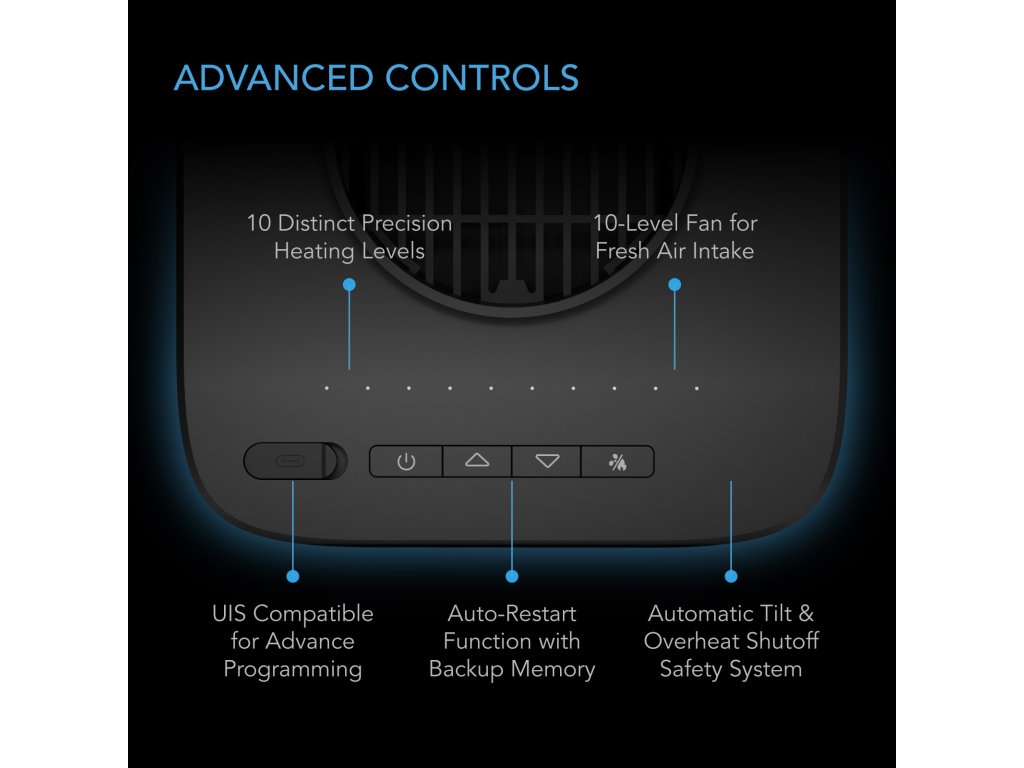 - Bezpečnostní konstrukce s certifikací ETL s alarmy proti převrácení, nehořlavými materiály a ochranou proti přehřátí s automatickým restartem.