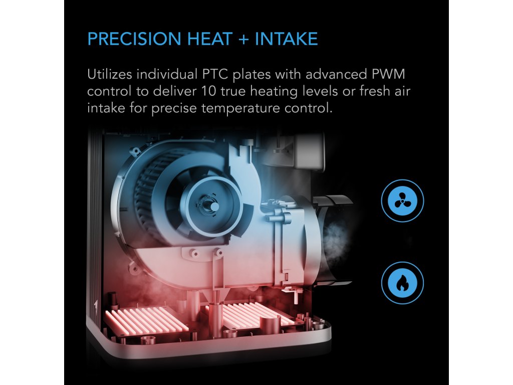 - Využívá individuální PTC desky s PWM ovládáním pro poskytnutí 10 skutečných úrovní tepla nebo přívodu čerstvého vzduchu pro vyváženou klimatickou kontrolu.