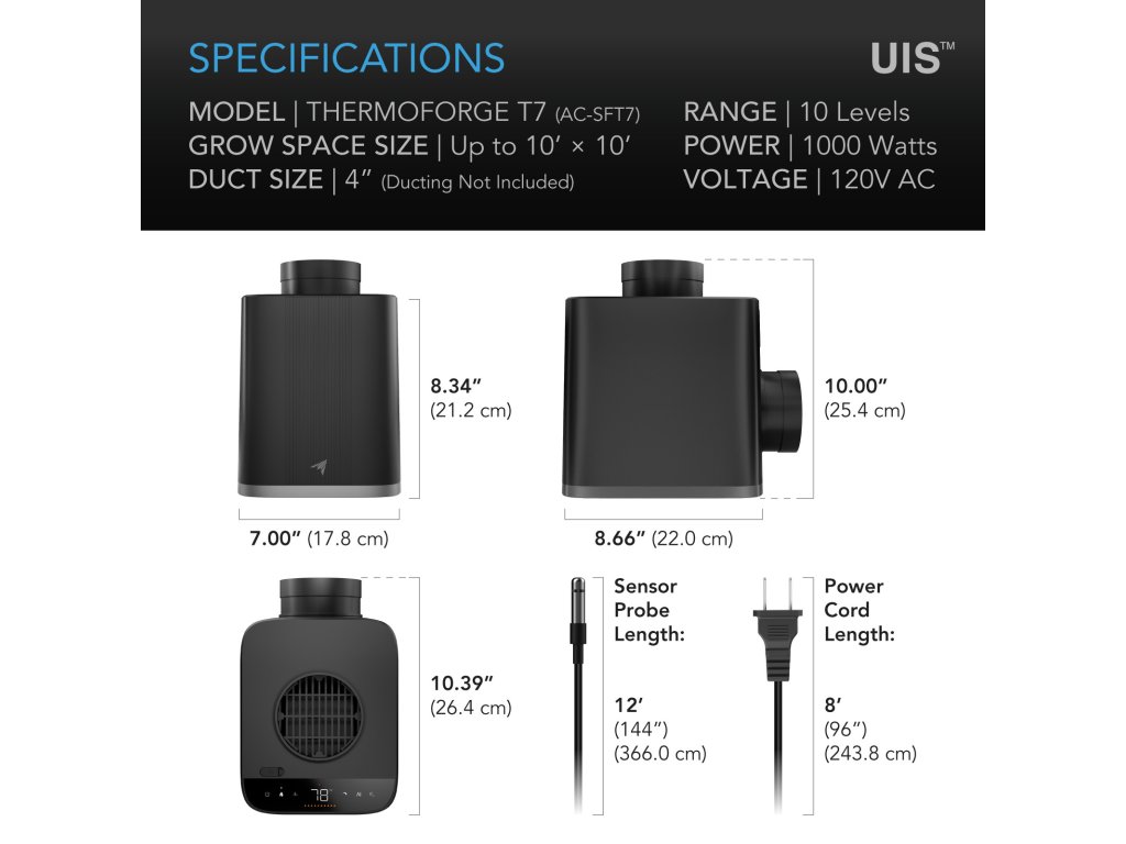 AC Infinity THERMOFORGE T7, Plant Heater 1000W with AI-Powered VPD Temp Controller