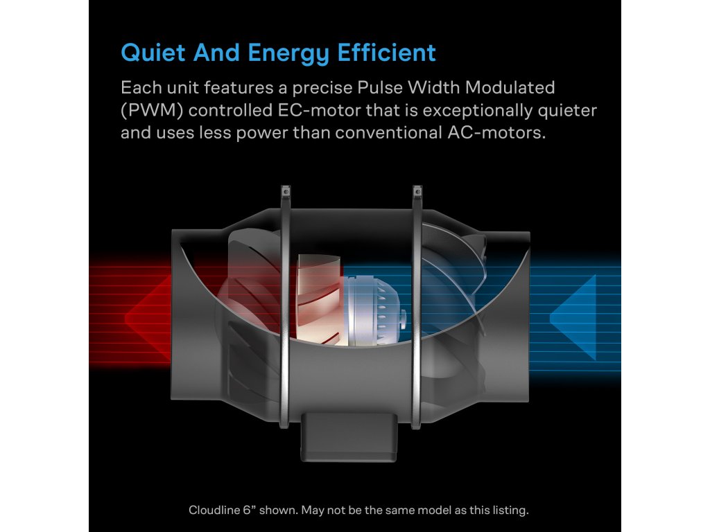 - Součástí balení je inline ventilátor CLOUDLINE s PWM řízeným EC motorem – zvláště tichý a energeticky úsporný.