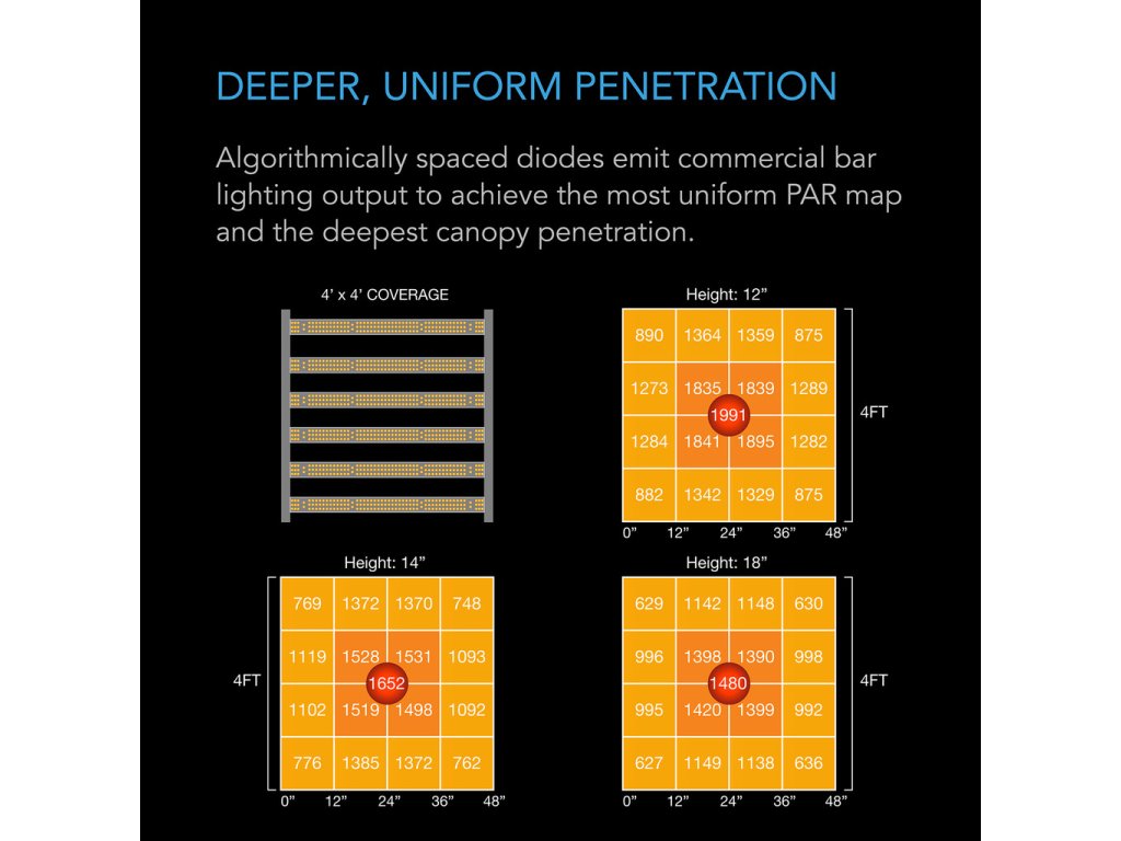 - Výkon: 500W s hodnotou 1991 PPFD pro intenzivní růst rostlin.