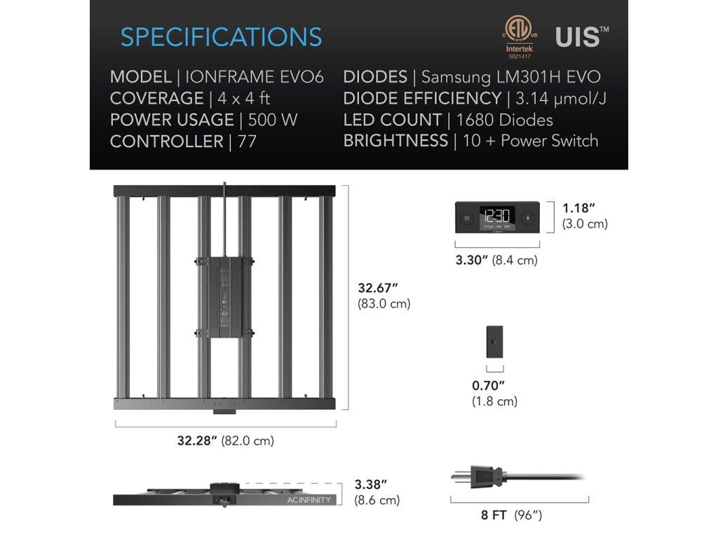 AC Infinity IONFRAME EVO6, Samsung LM301H EVO LED Grow Light, 500W, 120x120cm