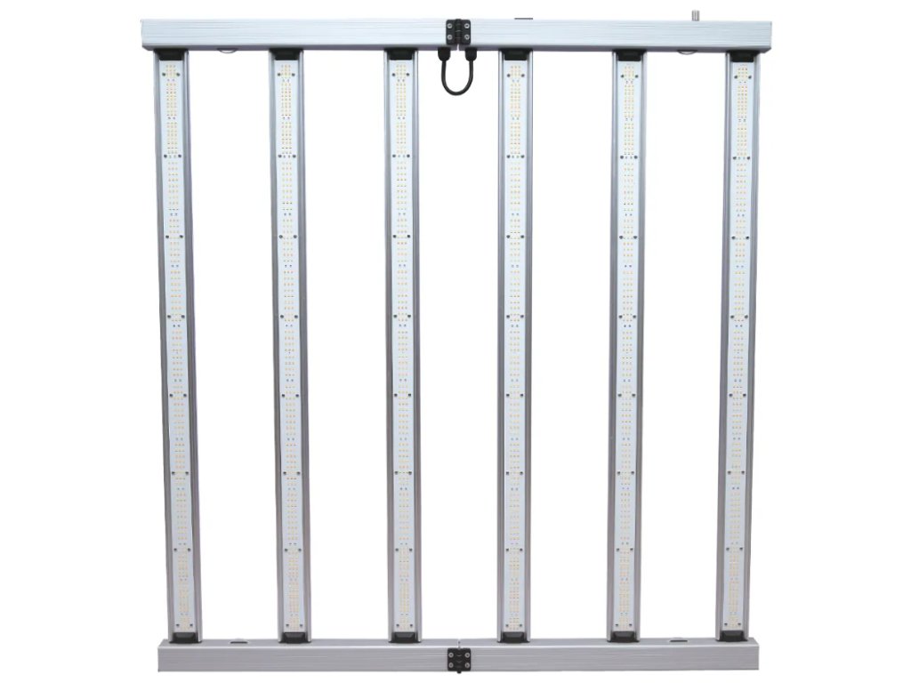LED panel 730W s plným spektrem, účinností 3.1 µmol/J, PPF 2190 µmol/s, stmívatelný, pro plochu 1.5x1.5 m, rozměry 1105x1033x48 mm.