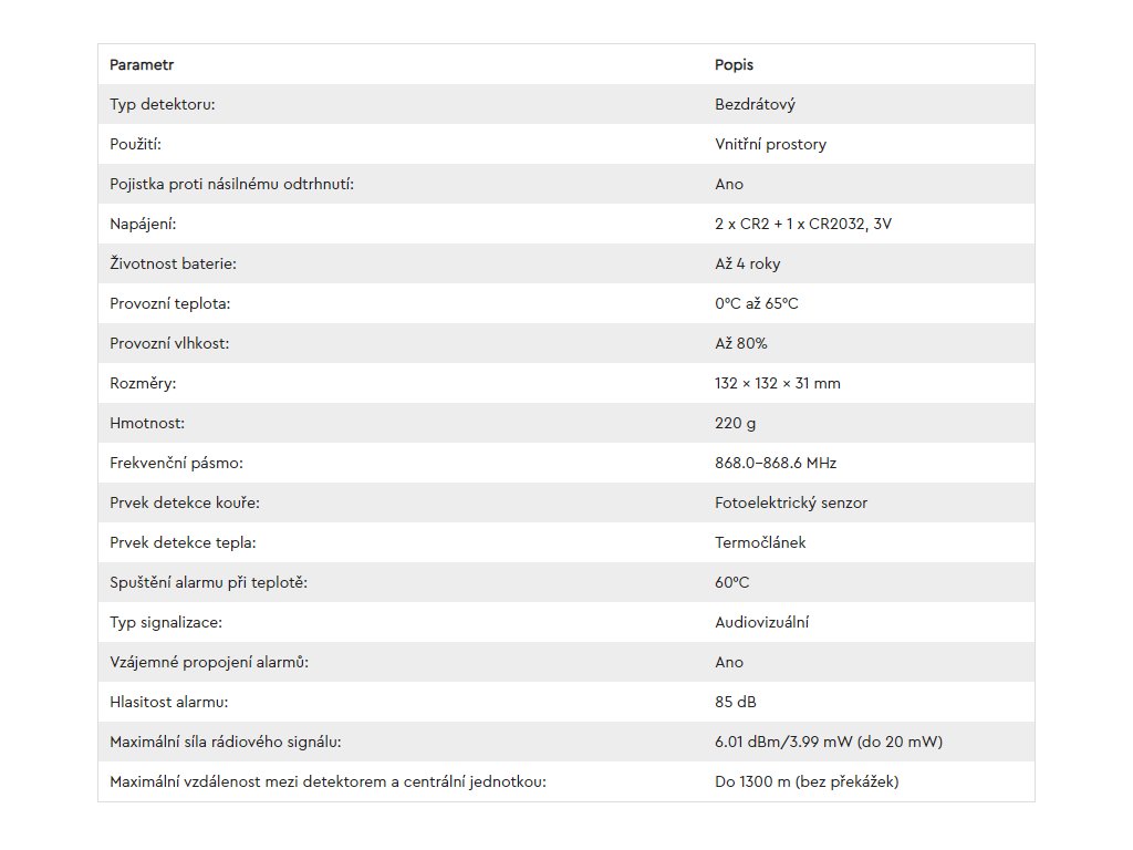 Možnost vzájemného bezdrátového propojení s dalšími detektory kouře.