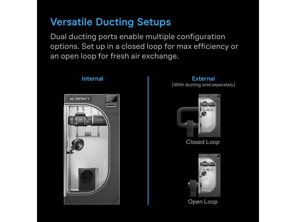 - Vlastní design zajišťuje špičkový výkon v horkém i chladném klimatu a stabilní pěstební podmínky v pěstebních místnostech až 1,5 × 1,5 m.