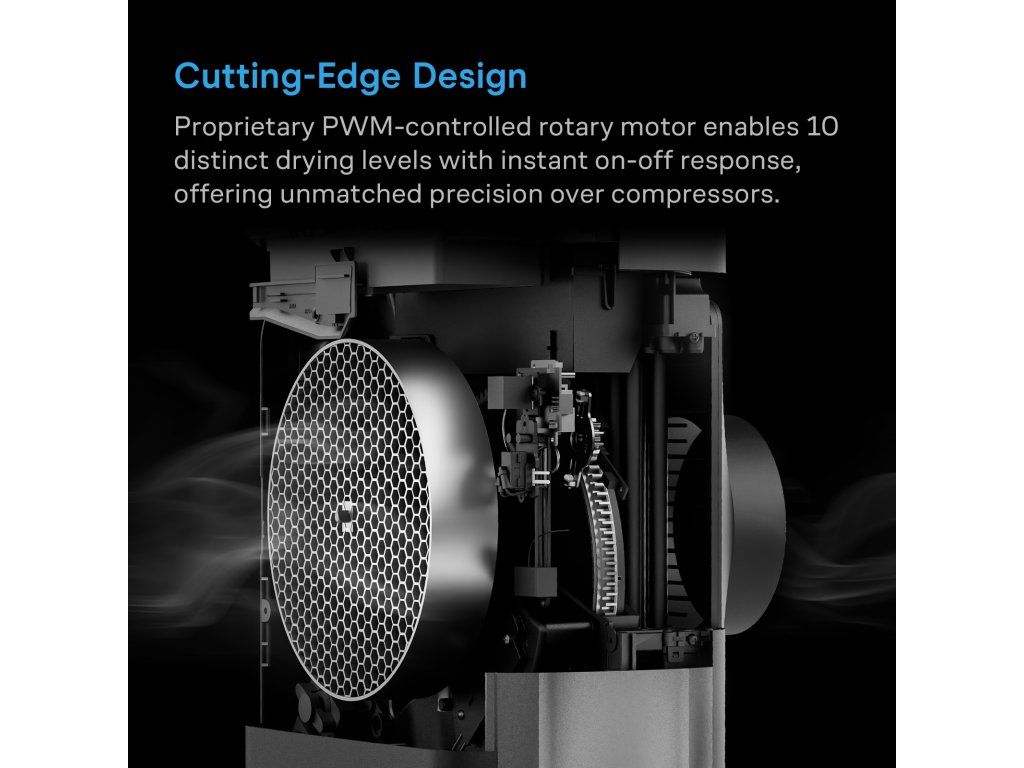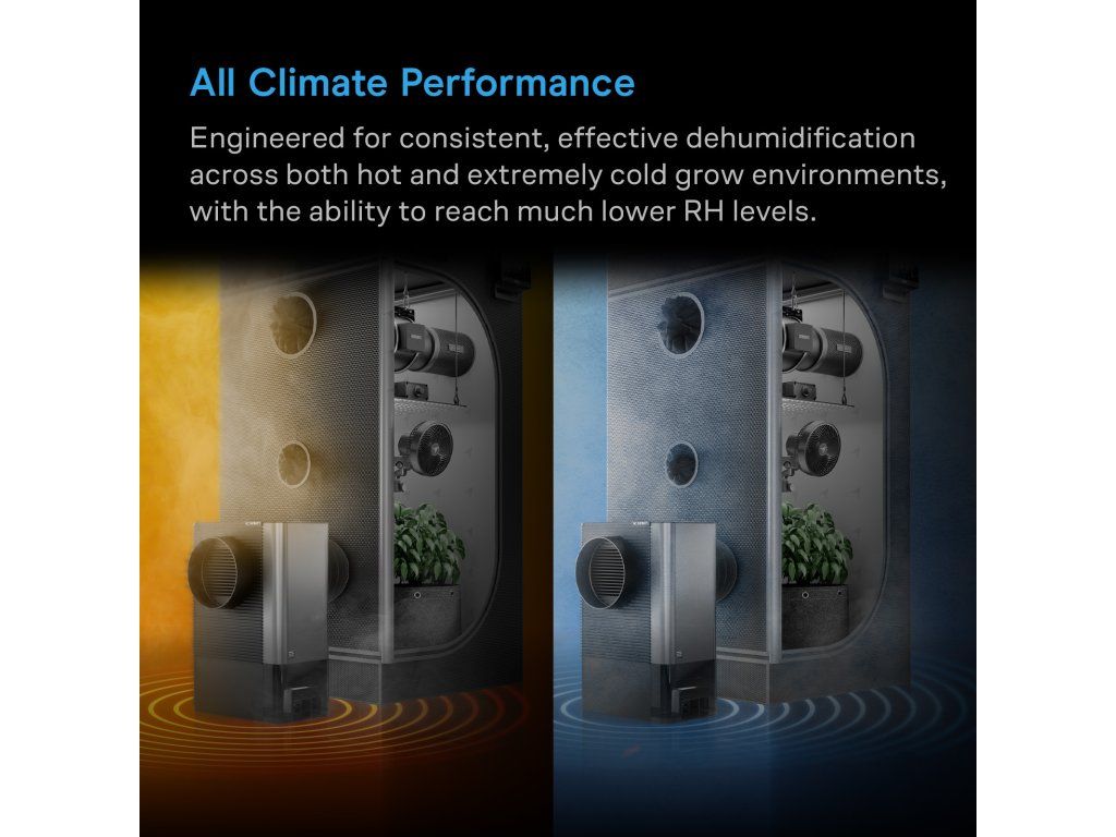 Proprietární rotační motor s PWM řízením nabízí 10 přesných úrovní sušení s okamžitou odezvou zapnutí/vypnutí, což poskytuje výrazně vyšší přesnost než konvenční kompresorové odvlhčovače. Navržen pro spolehlivé a efektivní odvlhčování v horkých i extrémně chladných pěstebních prostředích s možností dosažení vlhkosti až 25 % RV.