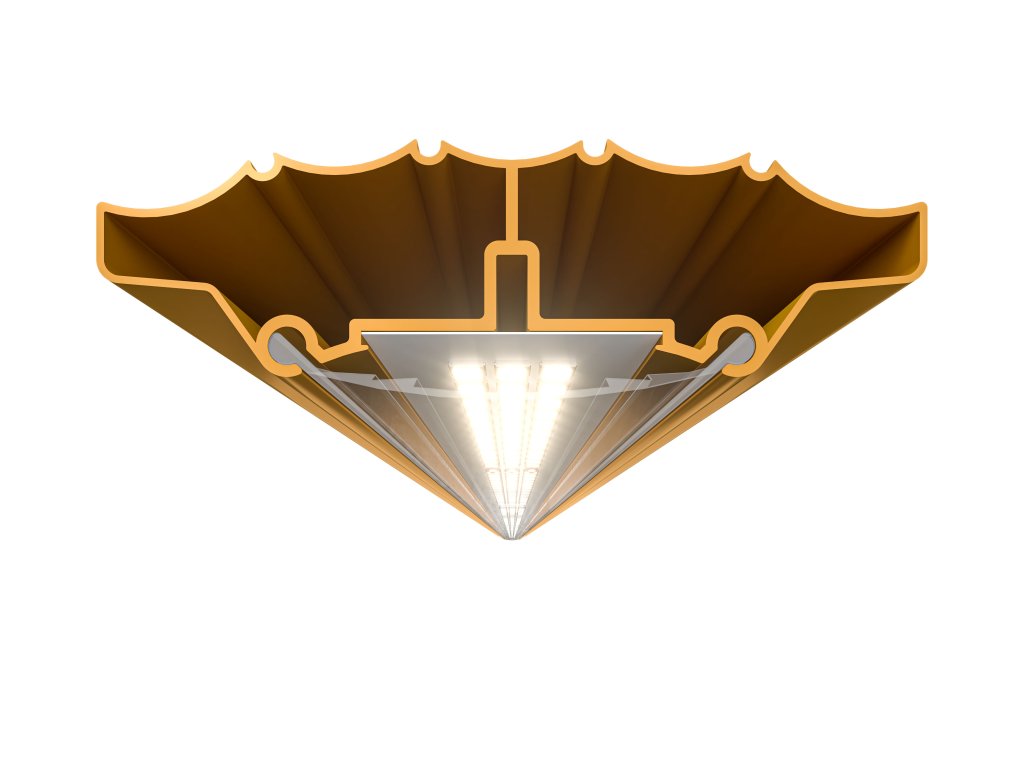 Asymetrické uspořádání LED: Až o 80 % více světla na okrajích pro rovnoměrné pokrytí stříšky