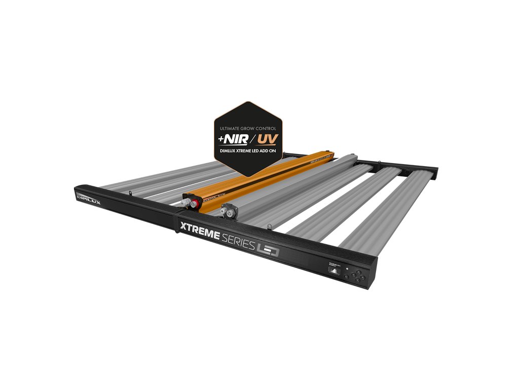 DimLux Xtreme Series NIR+UV-A Add-On - 140W je navržen tak, aby poskytoval vašim rostlinám ideální spektrum světla pro fázi kvetení. S přidaným infračerveným (NIR) a ultrafialovým (UV-A) světlem tato přídavná jednotka podporuje fotosyntézu, zvyšuje produkci pryskyřic a podporuje tvorbu esenciálních olejů, což vede k robustnějším a kvalitnějším rostlinám.