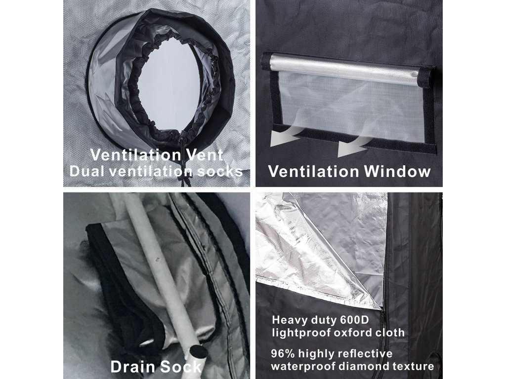 High-end growbox s ocelovým rámem z tyčí o průměru 25,4 mm, pevnými rohy, vstupy pro automatické zavlažování, mylar 600D vnitřní fólií (100% omyvatelná), 100% voděodolným dnem. Stan lze zvýšit z 220 na 250 cm. Rozměry:Buďte první, kdo napíše příspěvek k této položce.