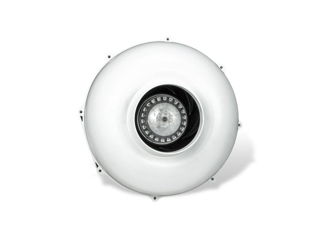 Vysoce účinný inline ventilátor vybavený prémiovým motorem ebm-papst s velmi nízkou spotřebou energie díky technologii EC.