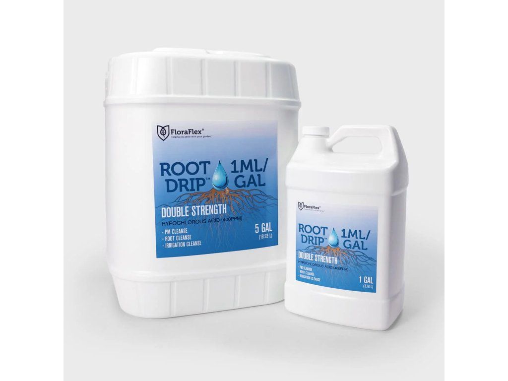 Root Drip je přípravek pro čištění kořenů, zavlažovacích systémů a pro odstraňování plísně. Je vyroben ze soli pomocí proprietárního elektrochemického procesu. Root Drip je pro rostliny bezpečná chemikálie s výkonnými oxidačními vlastnostmi, které přispívají ke zlepšení dostupnosti živin i kyslíku a vytvářejí čistou kořenovou zónu bez nežádoucích organismů a minerálních usazenin.