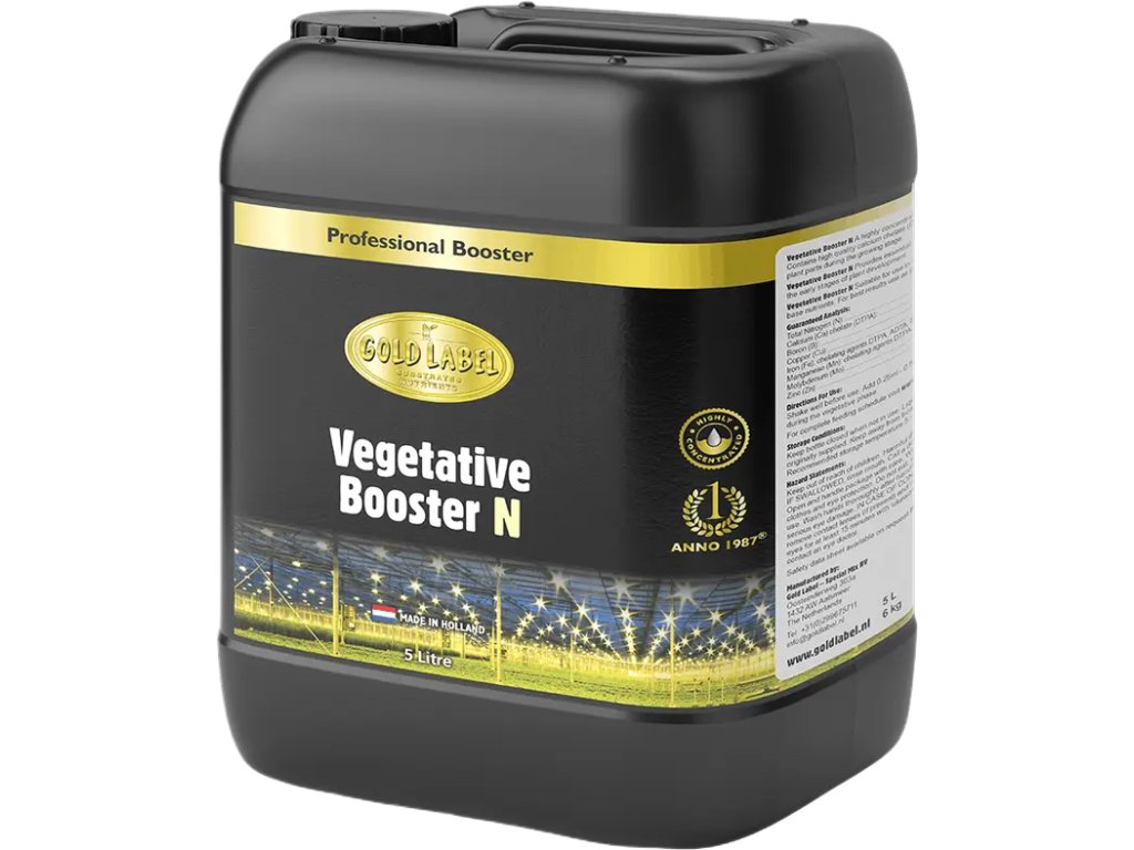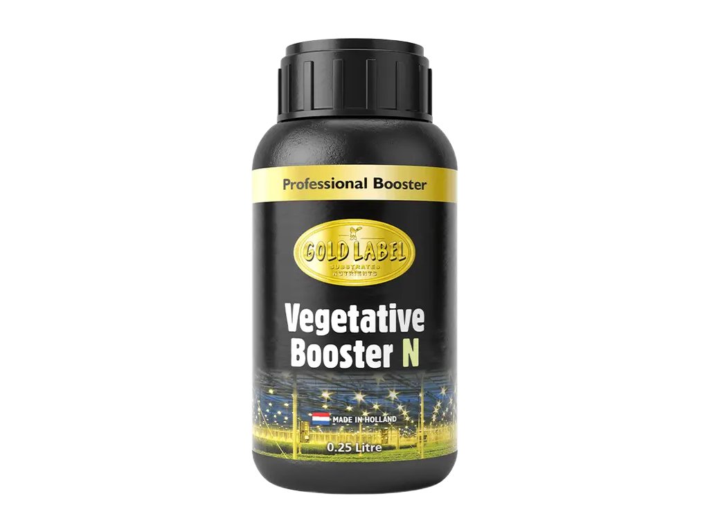 Během vegetativní fáze přidejte 0,25 ml – 0,5 ml přípravku Gold Label Vegetative Booster N na litr vody.