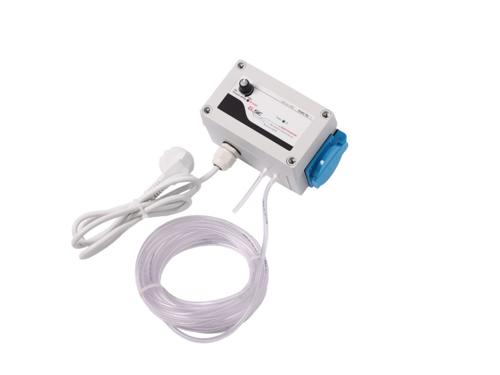 The controller is supplied as a unit and is ready for use. The unit comes complete in a waterproof housing, with compatible mains sockets with hinged lids and 6m measurement air pipe, which makes it the perfect controller for humid rooms.