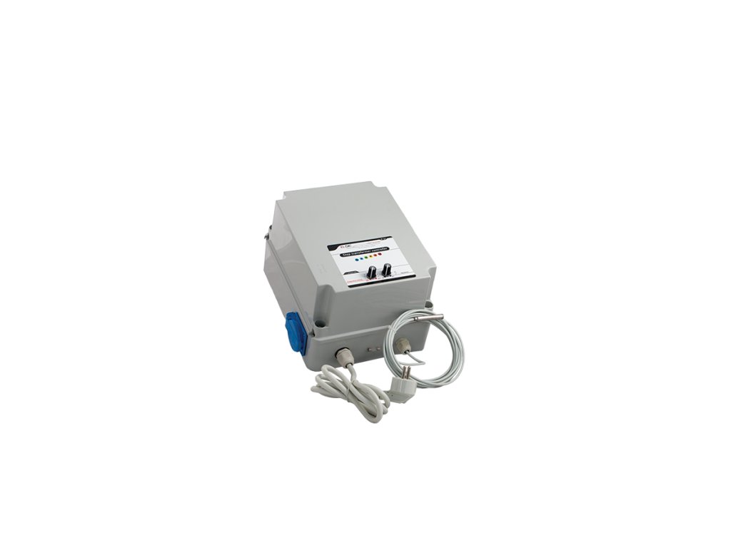 Teplotu a hysterzi lze nastavit pomocí dvou knoflíků. Regulátor dodáváme kompletní a je připraven k použití. O ochranu regulátoru se stará voděodolný kryt. Regulátor se hodí do vlhkého prostředí.