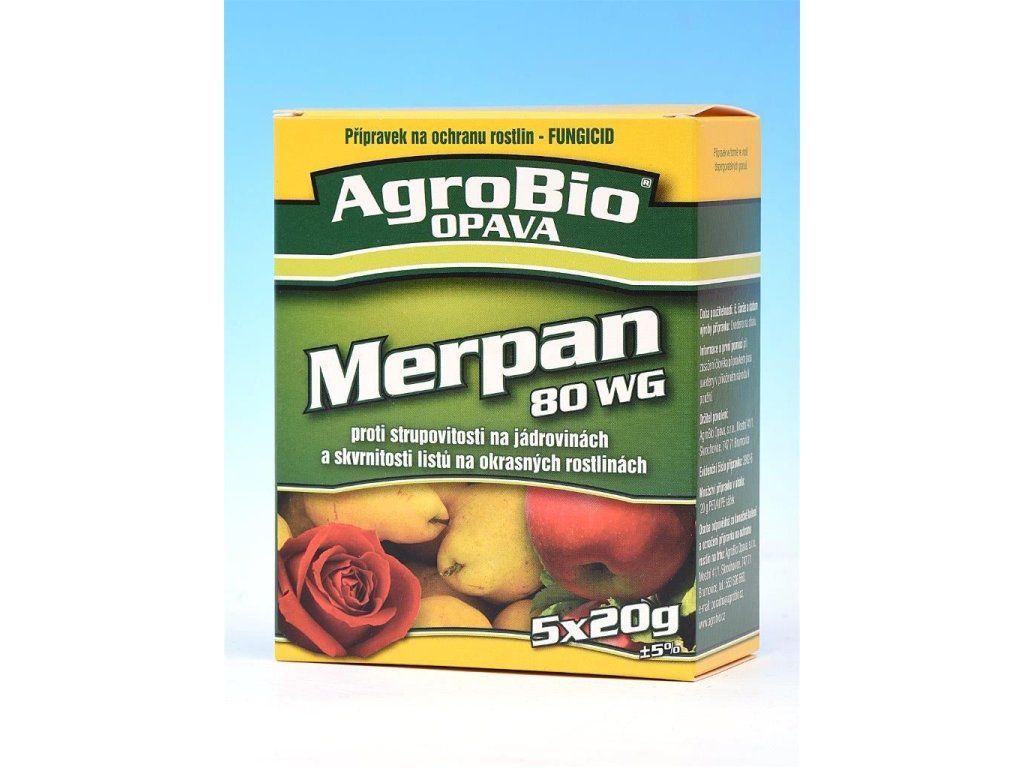 AgroBio Merpan 80 WG je fungicidní přípravek k ochraně jádrovin a okrasných rostlin proti houbovým chorobám a je kontaktním přípravkem.