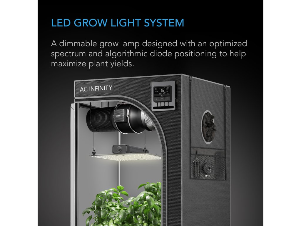 LED osvětlení pro pěstování rostlin s plným spektrem, navržené s algoritmicky umístěnými diodami Samsung LM301H pro maximalizaci výnosů rostlin. Je vybaveno proprietárním ovladačem, který umožňuje stmívání světla a lze jej připojit k našim inteligentním ovladačům. Ty umožňují spárování s dalšími LED svítidly při použití rozšiřujících donglů (prodávají se samostatně). Je postaveno na bezventilátorové hliníkové desce z jednoho kusu, která odvádí teplo a prodlužuje životnost diod. Všechny komponenty jsou utěsněny podle normy IP-65, aby si zachovaly špičkový výkon i v prostředí s vyššími teplotami a vlhkostí. Zahrnuje pár kovových závěsů a lanových závěsů. Toto LED osvětlení je určeno pro pěstební stany s vnitřní reflexní Mylarovou výstelkou a používá se k pěstování různých rostlin, ovoce a zeleniny. Tento produkt je součástí platformy UIS™ pěstebních zařízení a inteligentních ovladačů, která je navržena tak, aby se spojila s aplikací AC Infinity přes WiFi a dosáhla tak ideálního prostředí.