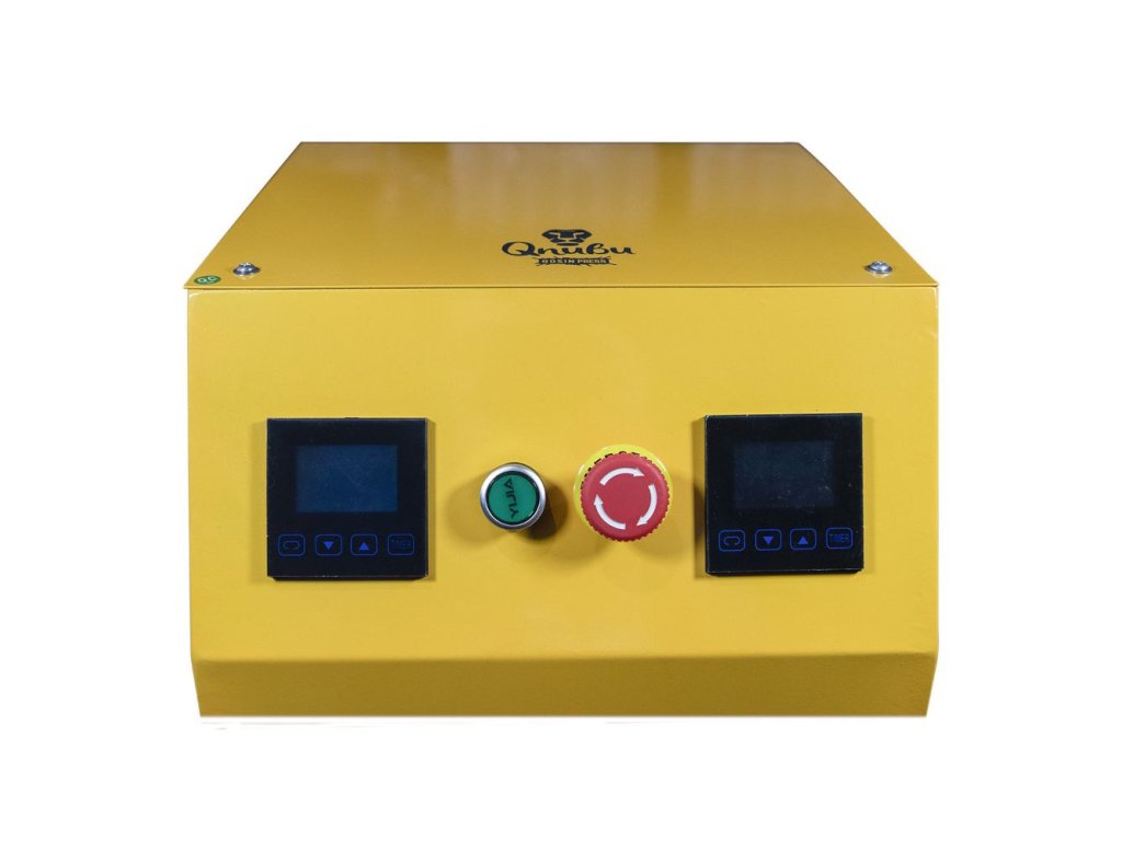 Qnubu Rosin Press Auto Lion 20 Tons, dvě vyměnitelné vyhřívané lisovací plochy 15x20cm a 7.6x25 cm jsou součástí produktu.