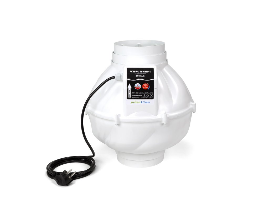 Prima Klima PK150/160WHSP-L, vysoce účinný AC ventilátor, integrovaný ve zcela odhlučněném pouzdře.