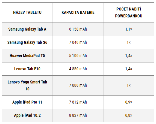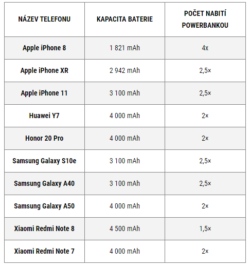 Kolikrát vám tedy reálně tato powerbanka nabije váš iPhone, „nejablečný“ mobil, tablet nebo iPad, se podívejte do tabulek níže, kde uvádíme v současnosti nejprodávanější modely…