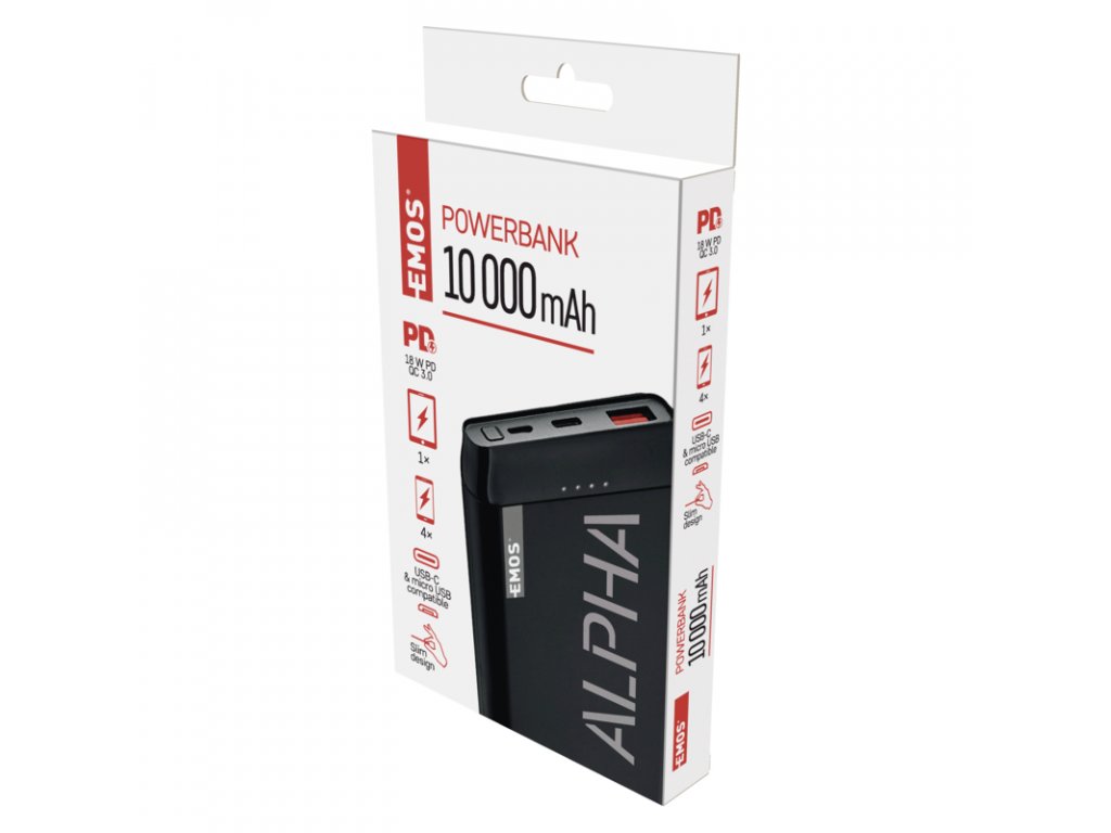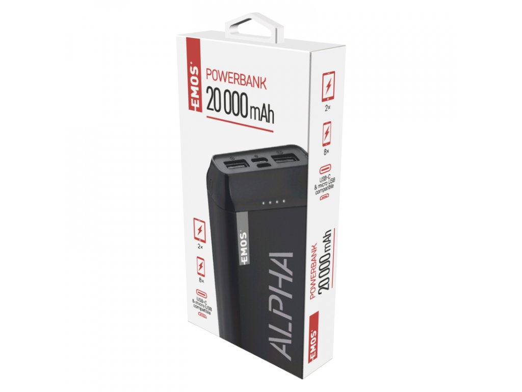 Powerbanka EMOS Alpha vás zbaví zbytečných stresů z vybitého mobilu, když jste zrovna daleko od domova. Do rukou vám přijde už nabitá, takže můžete rovnou využít její štědré kapacity a 2 USB výstupů, ze kterých dodáte energii 2 zařízením zároveň. Nepřetržitě ji navíc chrání 6 inteligentních bezpečnostních funkcí, které nedovolí ohrozit ji ani vaši elektroniku. Přesto nejde o žádnou monstrózní externí nabíječku, její štíhlé provedení se svými rozměry perfektně přizpůsobí vašemu mobilu. Díky svému elegantnímu designu navíc neudělá ostudu ani při obchodním jednání. A to nejlepší na konec, součástí balení jsou 2 USB kabely (micro USB i USB-C), které kromě energie umí přenášet i data.