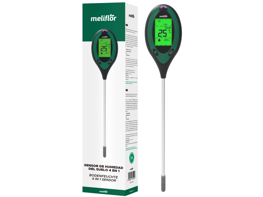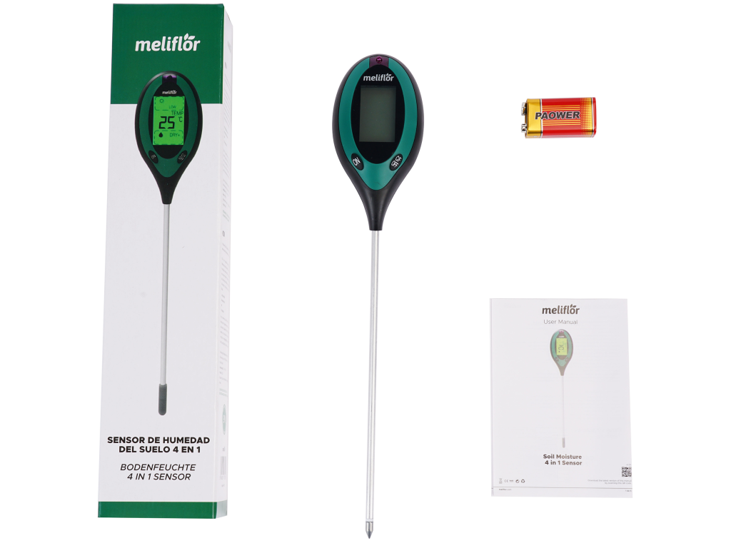 Měřič vlhkosti půdy Meliflor 4 v 1 vyniká svou přesností a snadným ovládáním. Stačí pouze zasunout sondu do půdy a během několika vteřin se vám na přehledném displeji zobrazí výsledky. Nevyžaduje žádné předchozí technické znalosti, je tak ideální jak pro začínající, tak pro zkušené zahradníky!