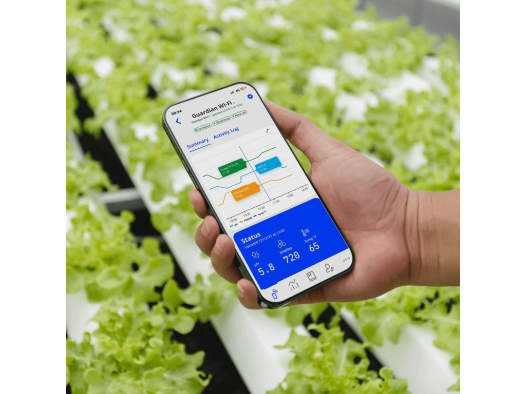 Nepřetržité monitorování: Automaticky měří pH, EC a teplotu 24/7, což zajišťuje optimální podmínky pro růst rostlin.