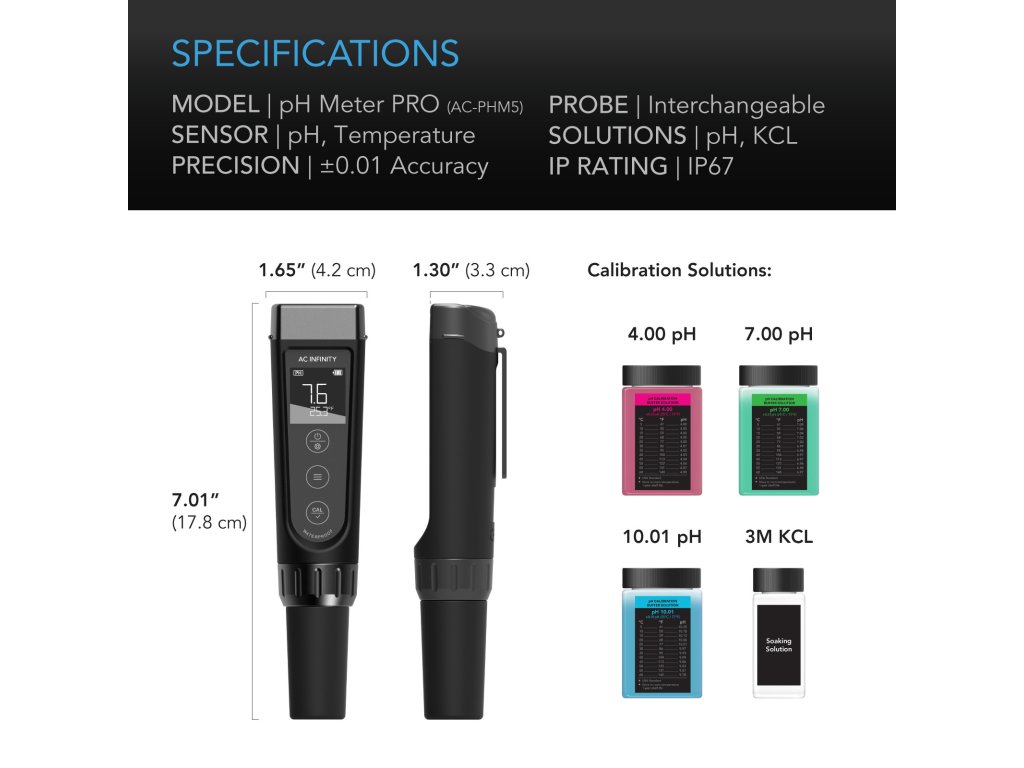 AC Infinity pH Meter PRO Kit, Interchangeable Probe