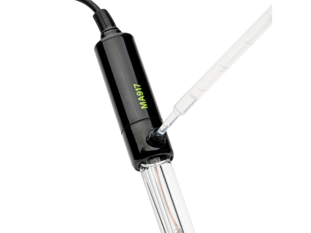 MA917B/1 je znovu plnitelná skleněná elektroda laboratorní kvality navržená pro rychlou odezvu a prodlouženou životnost. Konstrukce dvojitého spoje snižuje riziko ucpání s referenčním článkem fyzicky odděleným od mezilehlého elektrolytu.