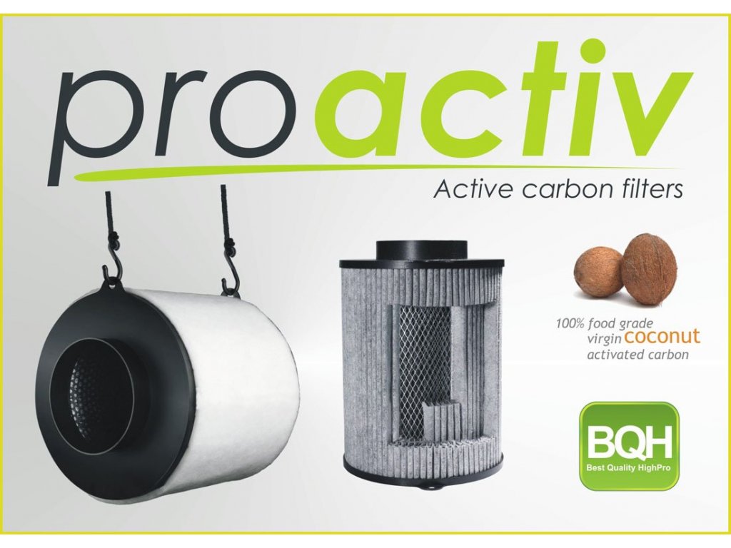 Částice aktivního uhlí z kokosu jsou velmi malé (0,4 až 0,8 mm) a proto je povrch, který neutralizuje zápach, kompaktnější a větší-730g/m2. Vícevrstvé fleece rohože vzduchotěsně zabraňují jakémukoliv příjmu/úniku nefiltrovaného vzduchu, snižují atmosférický tlak a efektivně zvyšují průtok vzduchu. Pro správné fungování pachového filtru Pro Activ 150/690 m3/h je třeba udržovat okolní vlhkost maximálně do 65%.Oproti konvenčním filtrům proti zápachu je menší, efektivnější, bezpečnější a při správném použití i trvanlivější. Praktickou vychytávkou jsou již zabudovaná pevná oka na zavěšení filtru pomocí závěsů Prohanger XL.