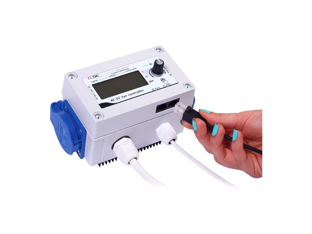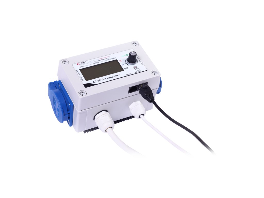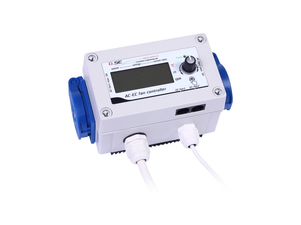 This AC-EC fan controller with LCD display, a rotary push knob allows a very fast setting of all the values and reading of all the information's given by the fan such as actual set speed, temperature, humidity day/night, negative pressure of the intake fan and RPM (rounds per minute) of the EC-exhaust fan. A built in light sensor in the probe recognise day/night modes. Two 5A/230V AC exits for intake and exhaust fan, in parallel you have 2xRJ45 connector and you can choose between 0-10V or PWM (pulse wide modulation) signal. 2 internal temperature sensors prevent from overheating on the heat sink and processor side. The AC-EC fan controller comes with power cable 1.5m, 4m sensor cable. It is ready to use. You can program 15 individual settings with rotary push button.