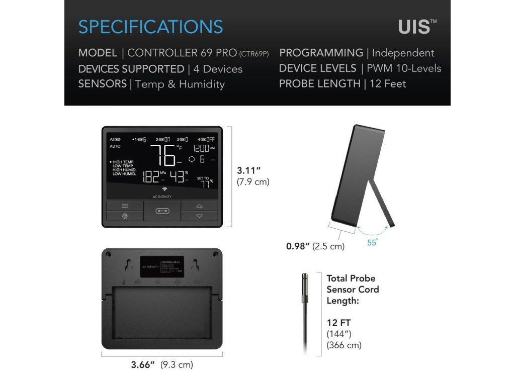 AC Infinity CONTROLLER 69 PRO, Independent Programs for Four Devices, Bluetooth + WiFi