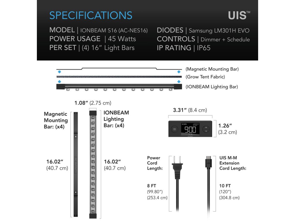 AC Infinity IONBEAM S16, Full Spectrum LED Strip, 4 Strips, 40.7cm