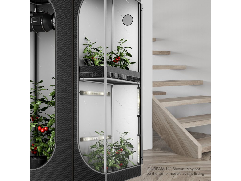 - Flexibilní montáž: Magnetické uchycení na rám nebo plátno pěstebního stanu pomocí ocelových tyčí, umožňuje snadnou instalaci a flexibilní umístění.