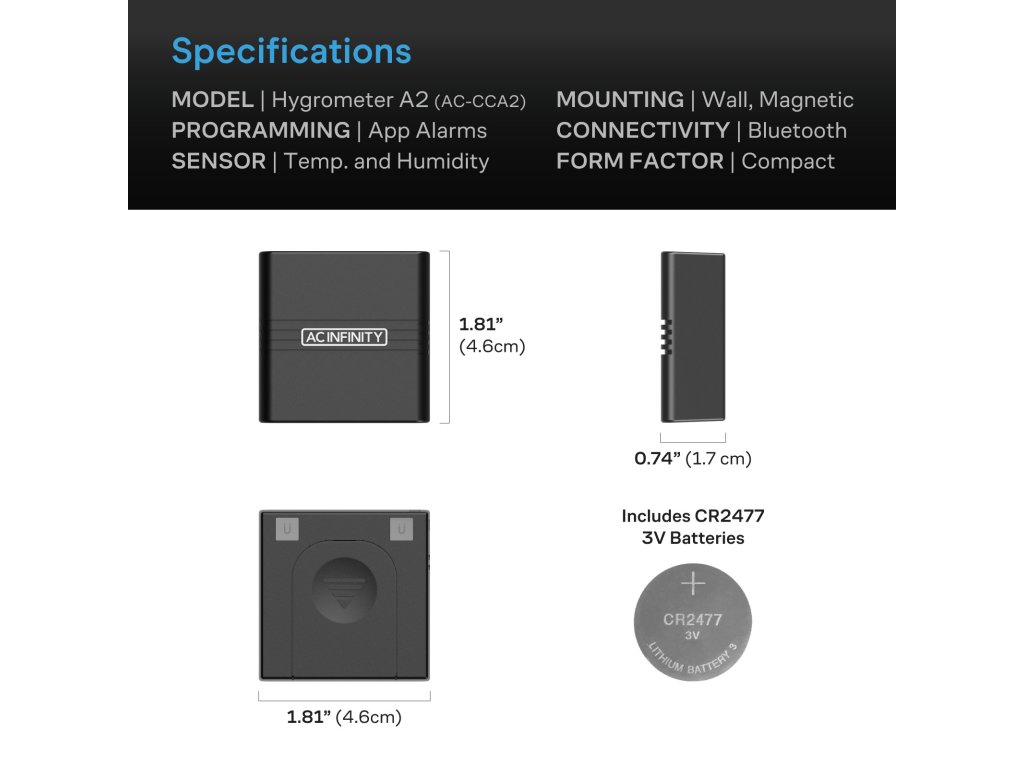 AC Infinity CLOUDCOM A2, Mini Smart Hygrometer with Internal Climate Sensor