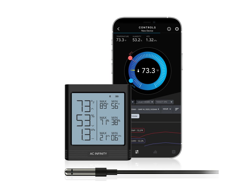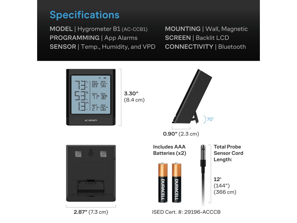 AC Infinity CLOUDCOM B1, Smart Hygrometer with Display and External Climate Sensor Probe