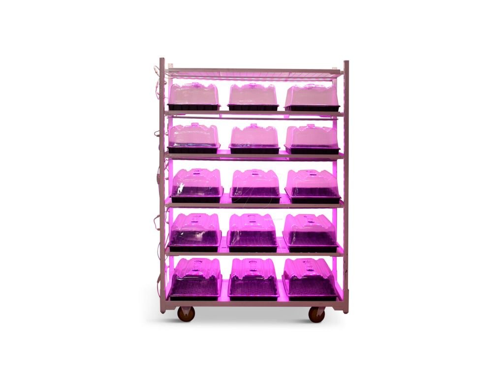 Kompletní vozík pro microgreens a množení klonů / sazenic s integrovaným systémem LED.