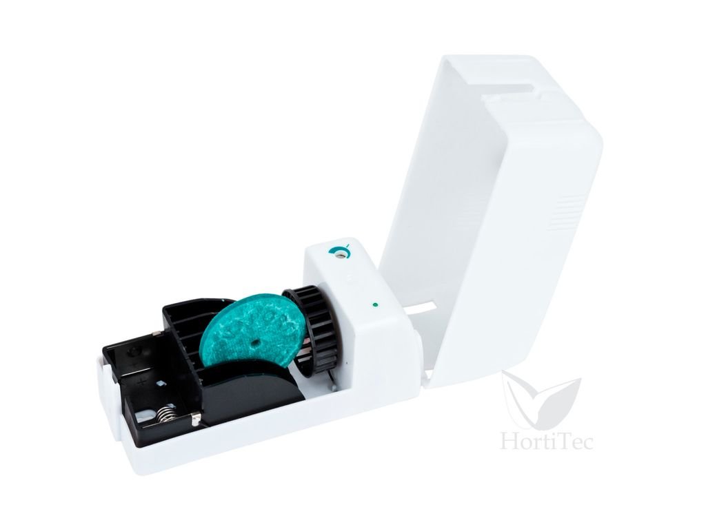Elektronický neutralizátor vzduchu se zabudovaným ventilátorem na baterie typu D 1,5 V. Intervalové nastavení se provádí pomocí vnitřního regulačního kolečka po minutách (lze naprogramovat až 1 minutu provozu a 30 minut pauzu). Jako náplně se používají disky Vaportronic o hmotnosti 6 nebo 12 gramů (maximální počet disků v přístroji - 5). Přístroj jednoduše namontujete na zeď, snadno obsluhujete a neutralizujete zápach v prostoru až 60 m3!